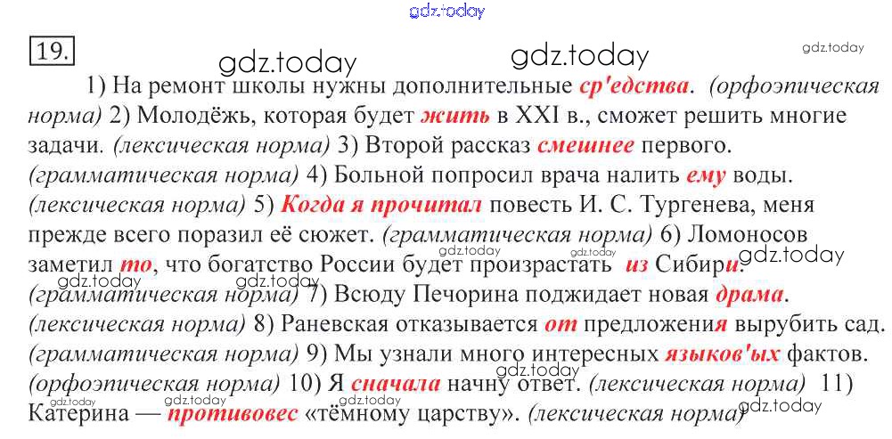 На страницах сайта gdz.today вы найдете учебный и вспомогательный материал, направленный на улучшения знаний школьной программы. ГДЗ - онлайн мир знаний Решение к упражнениям 19 Учебнику по Русскому языку для 10-11 класса Греков, Крючков Просвещение 2016