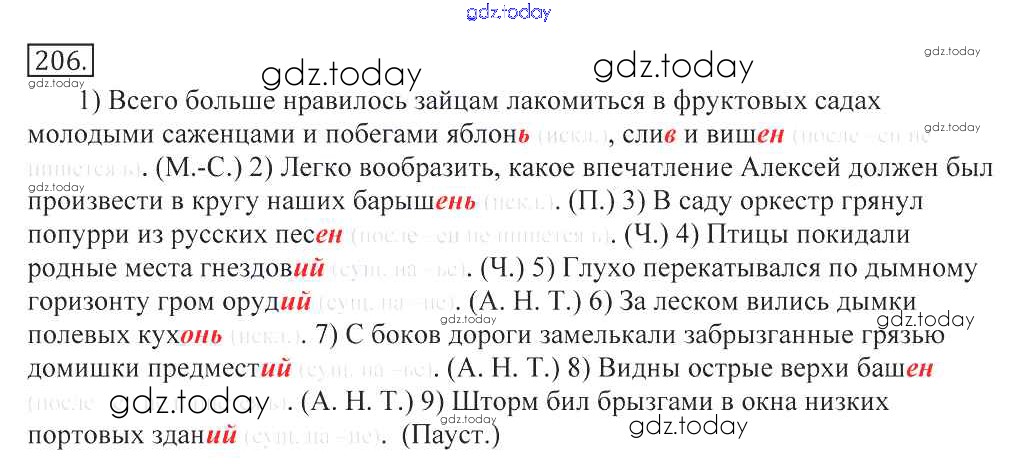 Ответы к Решение к упражнениям 206 Учебнику по Русскому языку для 10-11 класса Греков, Крючков Просвещение 2016