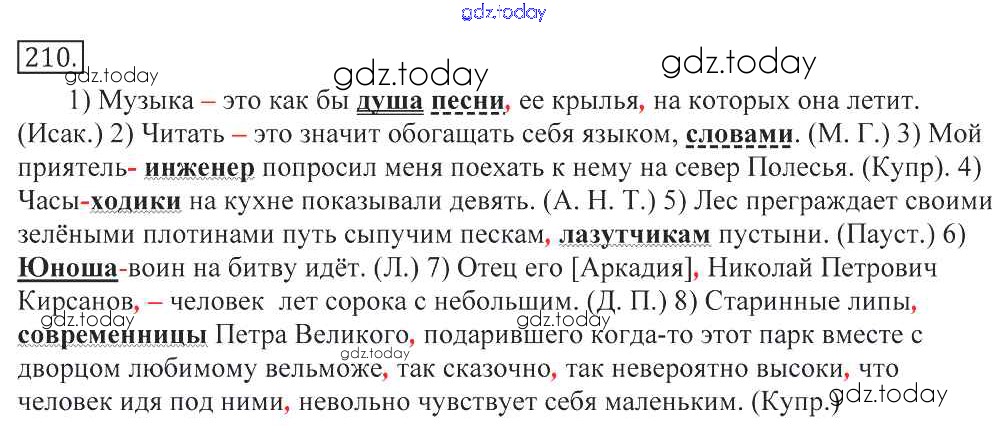 На страницах сайта gdz.today вы найдете учебный и вспомогательный материал, направленный на улучшения знаний школьной программы. ГДЗ - онлайн мир знаний Решение к упражнениям 210 Учебнику по Русскому языку для 10-11 класса Греков, Крючков Просвещение 2016