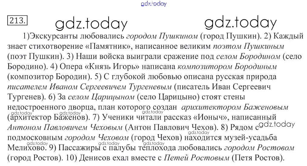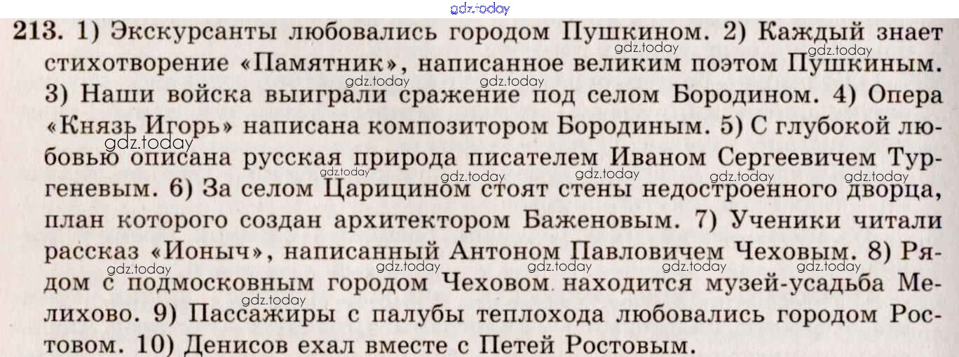 На страницах сайта gdz.today вы найдете учебный и вспомогательный материал, направленный на улучшения знаний школьной программы. ГДЗ - онлайн мир знаний Решение к упражнениям 213 Учебнику по Русскому языку для 10-11 класса Греков, Крючков Просвещение 2016
