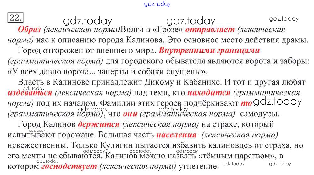 На страницах сайта gdz.today вы найдете учебный и вспомогательный материал, направленный на улучшения знаний школьной программы. ГДЗ - онлайн мир знаний Решение к упражнениям 22 Учебнику по Русскому языку для 10-11 класса Греков, Крючков Просвещение 2016