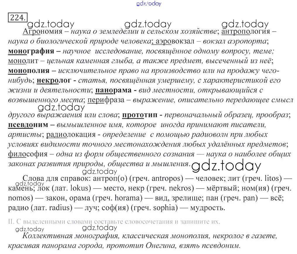 На страницах сайта gdz.today вы найдете учебный и вспомогательный материал, направленный на улучшения знаний школьной программы. ГДЗ - онлайн мир знаний Решение к упражнениям 224 Учебнику по Русскому языку для 10-11 класса Греков, Крючков Просвещение 2016