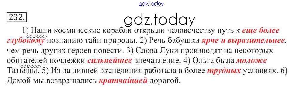 На страницах сайта gdz.today вы найдете учебный и вспомогательный материал, направленный на улучшения знаний школьной программы. ГДЗ - онлайн мир знаний Решение к упражнениям 232 Учебнику по Русскому языку для 10-11 класса Греков, Крючков Просвещение 2016