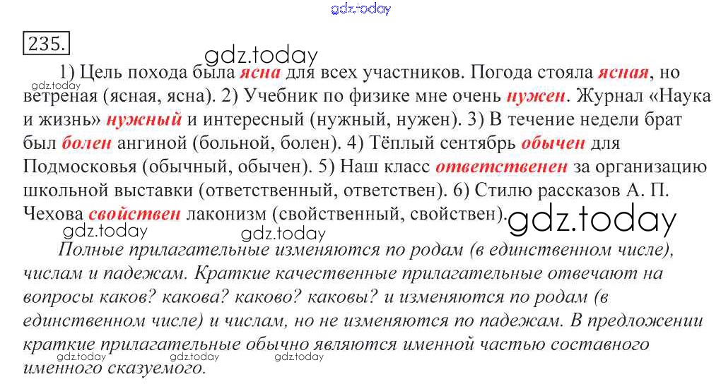 На страницах сайта gdz.today вы найдете учебный и вспомогательный материал, направленный на улучшения знаний школьной программы. ГДЗ - онлайн мир знаний Решение к упражнениям 235 Учебнику по Русскому языку для 10-11 класса Греков, Крючков Просвещение 2016
