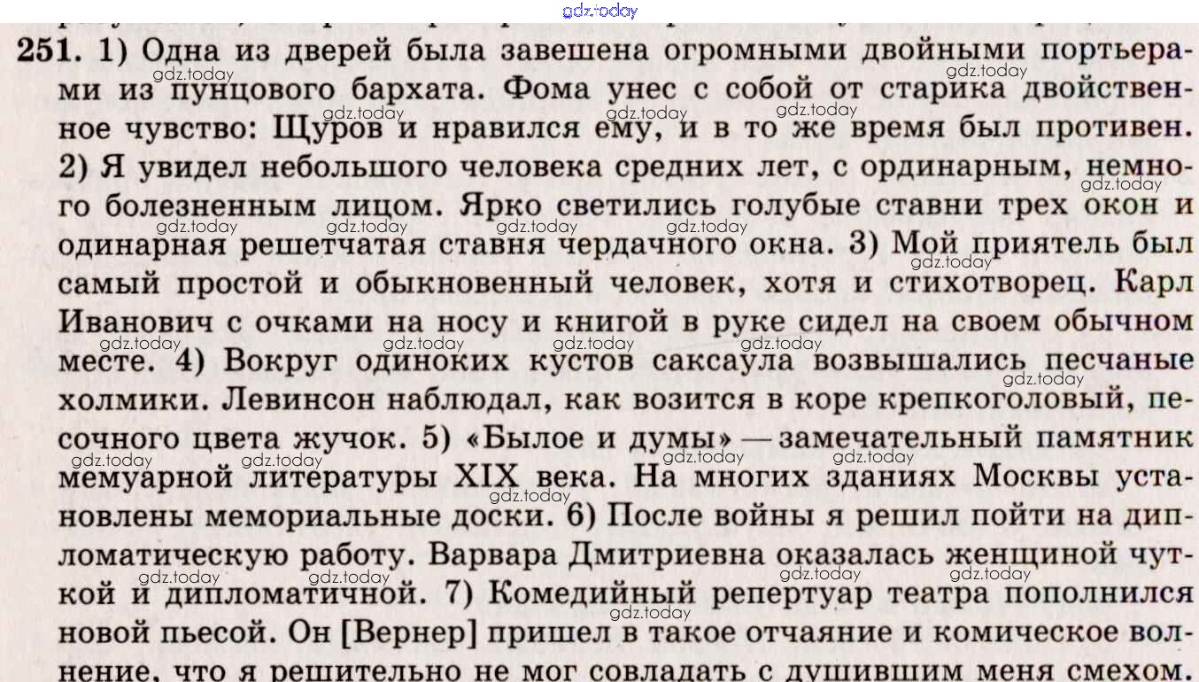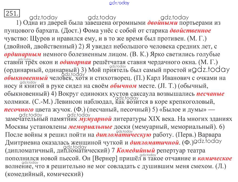 На страницах сайта gdz.today вы найдете учебный и вспомогательный материал, направленный на улучшения знаний школьной программы. ГДЗ - онлайн мир знаний Решение к упражнениям 251 Учебнику по Русскому языку для 10-11 класса Греков, Крючков Просвещение 2016