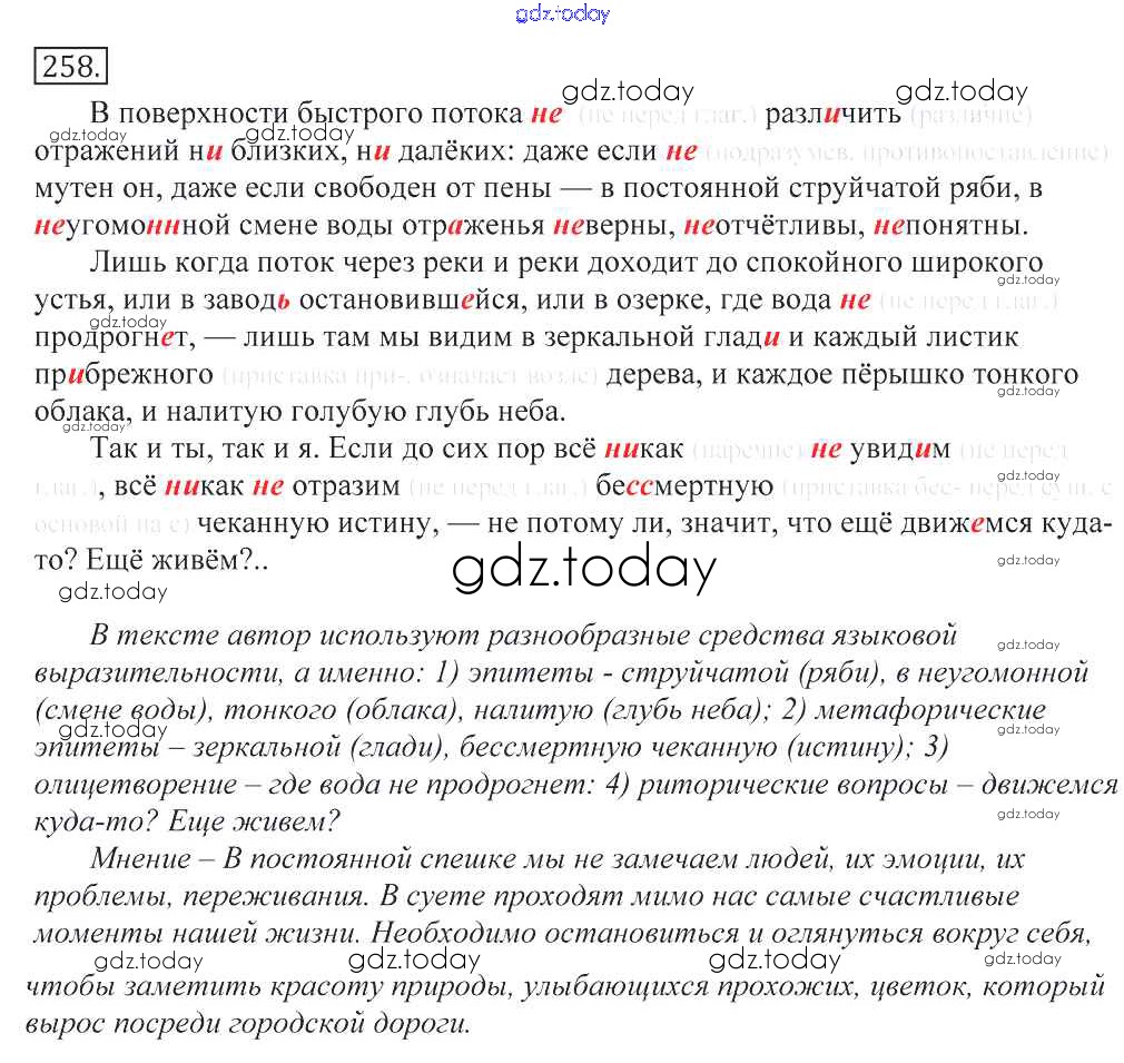 На страницах сайта gdz.today вы найдете учебный и вспомогательный материал, направленный на улучшения знаний школьной программы. ГДЗ - онлайн мир знаний Решение к упражнениям 258 Учебнику по Русскому языку для 10-11 класса Греков, Крючков Просвещение 2016