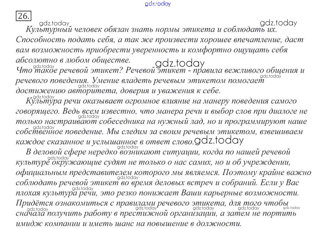 На страницах сайта gdz.today вы найдете учебный и вспомогательный материал, направленный на улучшения знаний школьной программы. ГДЗ - онлайн мир знаний Решение к упражнениям 26 Учебнику по Русскому языку для 10-11 класса Греков, Крючков Просвещение 2016