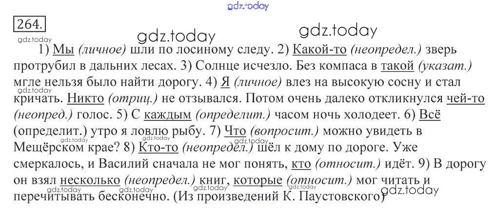 На страницах сайта gdz.today вы найдете учебный и вспомогательный материал, направленный на улучшения знаний школьной программы. ГДЗ - онлайн мир знаний Решение к упражнениям 264 Учебнику по Русскому языку для 10-11 класса Греков, Крючков Просвещение 2016