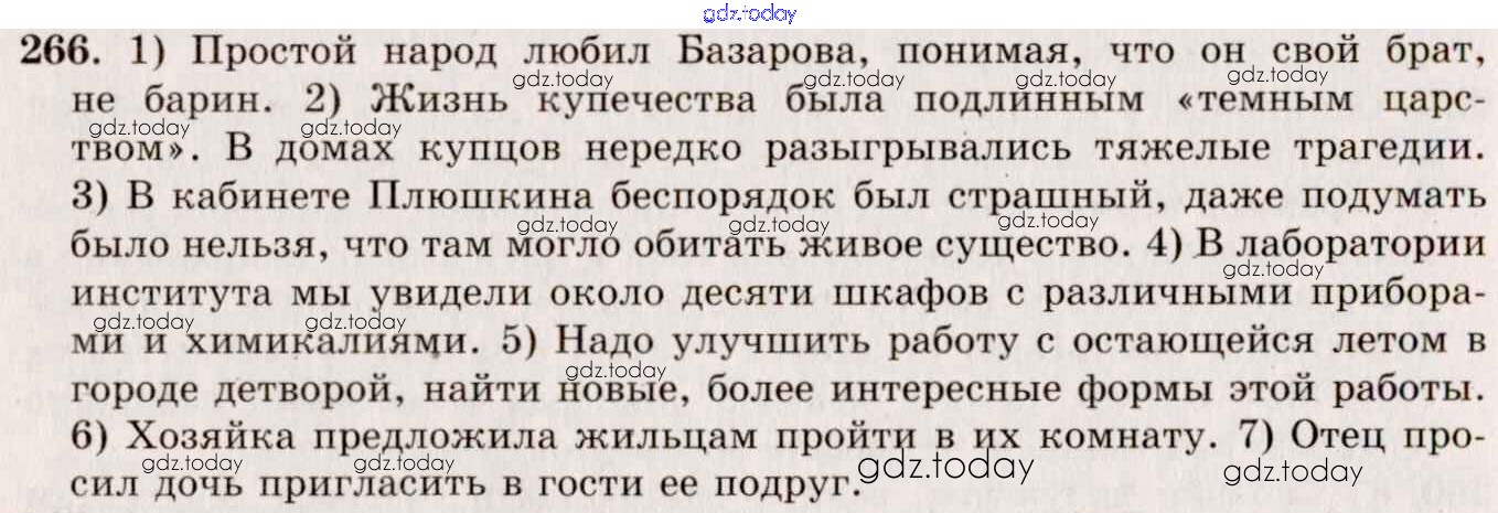 На страницах сайта gdz.today вы найдете учебный и вспомогательный материал, направленный на улучшения знаний школьной программы. ГДЗ - онлайн мир знаний Решение к упражнениям 266 Учебнику по Русскому языку для 10-11 класса Греков, Крючков Просвещение 2016