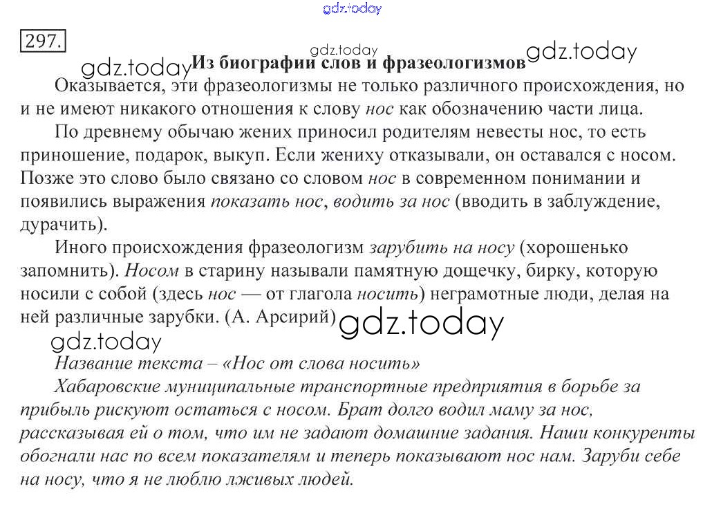 На страницах сайта gdz.today вы найдете учебный и вспомогательный материал, направленный на улучшения знаний школьной программы. ГДЗ - онлайн мир знаний Решение к упражнениям 297 Учебнику по Русскому языку для 10-11 класса Греков, Крючков Просвещение 2016