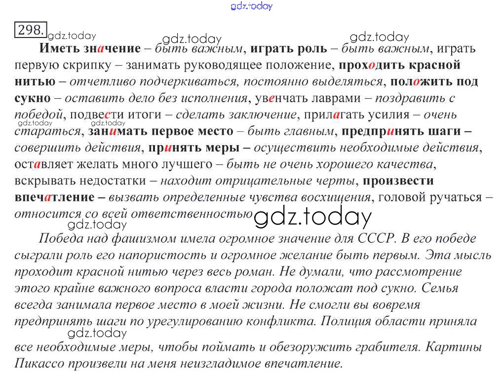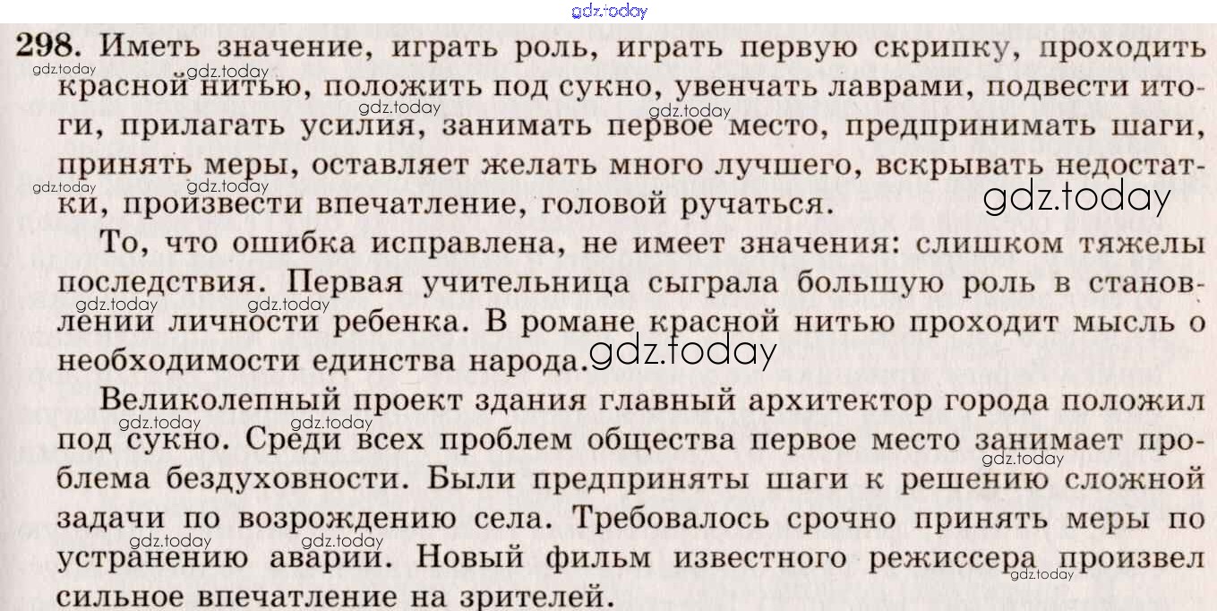 На страницах сайта gdz.today вы найдете учебный и вспомогательный материал, направленный на улучшения знаний школьной программы. ГДЗ - онлайн мир знаний Решение к упражнениям 298 Учебнику по Русскому языку для 10-11 класса Греков, Крючков Просвещение 2016