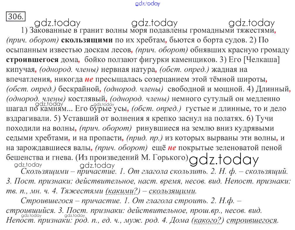 На страницах сайта gdz.today вы найдете учебный и вспомогательный материал, направленный на улучшения знаний школьной программы. ГДЗ - онлайн мир знаний Решение к упражнениям 306 Учебнику по Русскому языку для 10-11 класса Греков, Крючков Просвещение 2016