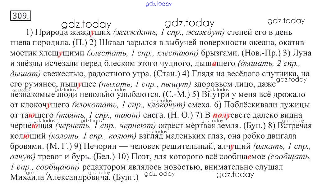 На страницах сайта gdz.today вы найдете учебный и вспомогательный материал, направленный на улучшения знаний школьной программы. ГДЗ - онлайн мир знаний Решение к упражнениям 309 Учебнику по Русскому языку для 10-11 класса Греков, Крючков Просвещение 2016