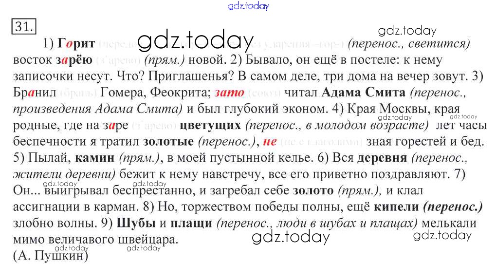 На страницах сайта gdz.today вы найдете учебный и вспомогательный материал, направленный на улучшения знаний школьной программы. ГДЗ - онлайн мир знаний Решение к упражнениям 31 Учебнику по Русскому языку для 10-11 класса Греков, Крючков Просвещение 2016