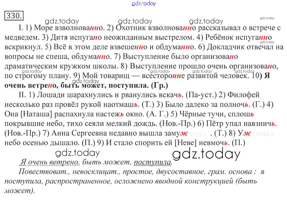 Ответы к Решение к упражнениям 330 Учебнику по Русскому языку для 10-11 класса Греков, Крючков Просвещение 2016