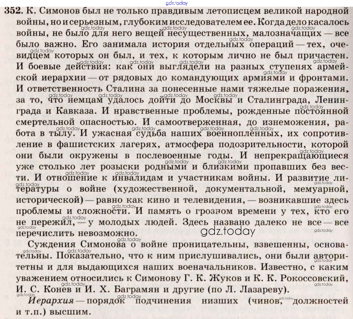 На страницах сайта gdz.today вы найдете учебный и вспомогательный материал, направленный на улучшения знаний школьной программы. ГДЗ - онлайн мир знаний Решение к упражнениям 352 Учебнику по Русскому языку для 10-11 класса Греков, Крючков Просвещение 2016
