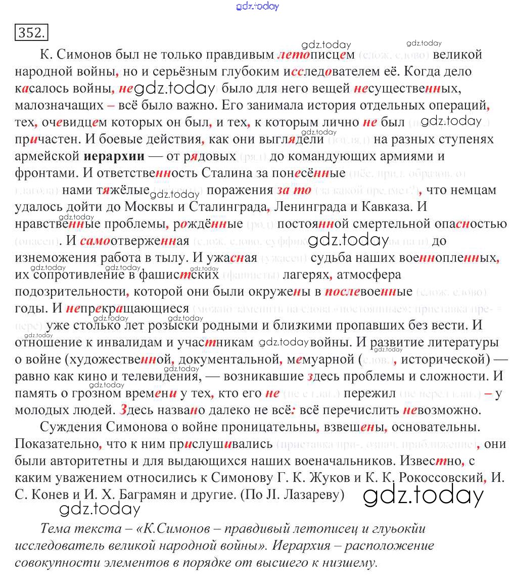 Ответы к Решение к упражнениям 352 Учебнику по Русскому языку для 10-11 класса Греков, Крючков Просвещение 2016