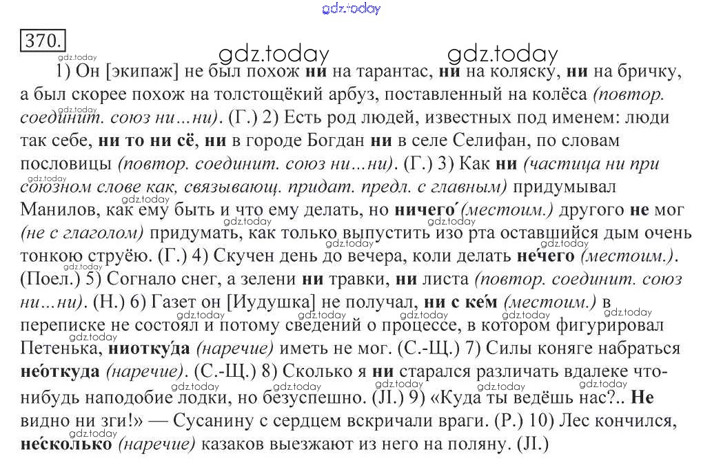 На страницах сайта gdz.today вы найдете учебный и вспомогательный материал, направленный на улучшения знаний школьной программы. ГДЗ - онлайн мир знаний Решение к упражнениям 370 Учебнику по Русскому языку для 10-11 класса Греков, Крючков Просвещение 2016
