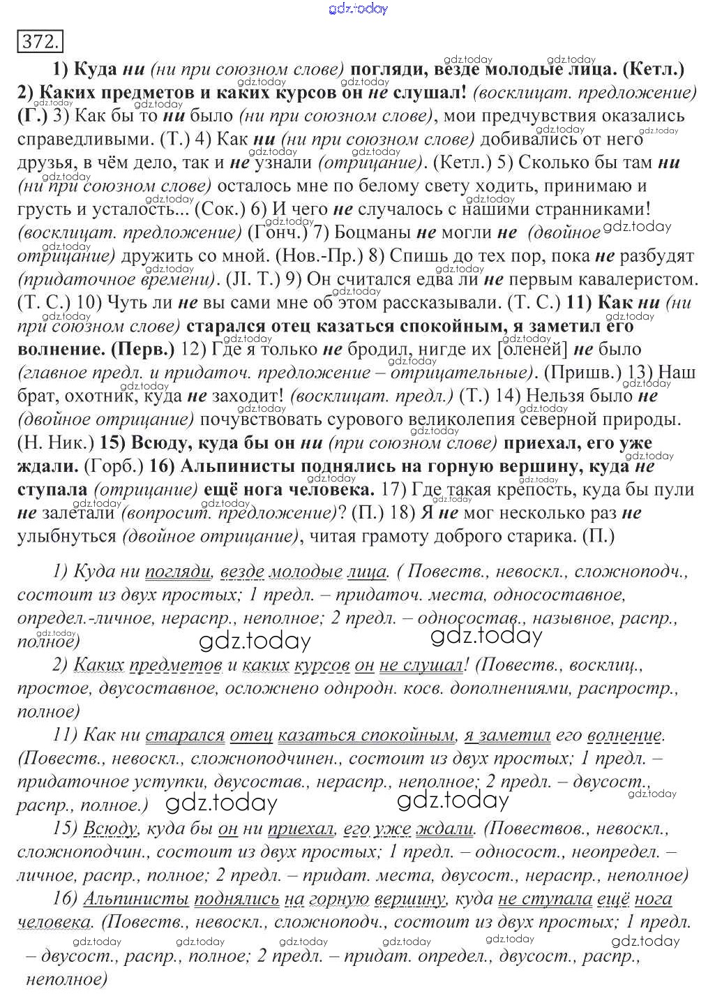Ответы к Решение к упражнениям 372 Учебнику по Русскому языку для 10-11 класса Греков, Крючков Просвещение 2016