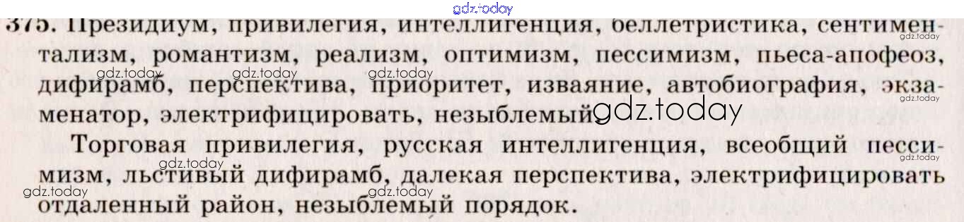 На страницах сайта gdz.today вы найдете учебный и вспомогательный материал, направленный на улучшения знаний школьной программы. ГДЗ - онлайн мир знаний Решение к упражнениям 375 Учебнику по Русскому языку для 10-11 класса Греков, Крючков Просвещение 2016