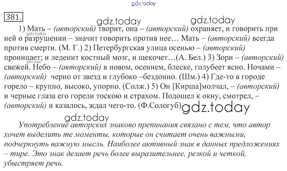 На страницах сайта gdz.today вы найдете учебный и вспомогательный материал, направленный на улучшения знаний школьной программы. ГДЗ - онлайн мир знаний Решение к упражнениям 381 Учебнику по Русскому языку для 10-11 класса Греков, Крючков Просвещение 2016