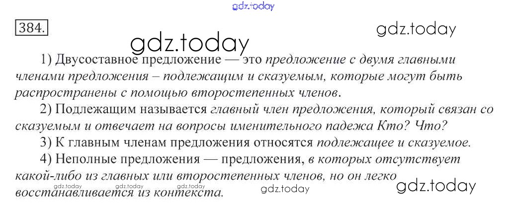 На страницах сайта gdz.today вы найдете учебный и вспомогательный материал, направленный на улучшения знаний школьной программы. ГДЗ - онлайн мир знаний Решение к упражнениям 384 Учебнику по Русскому языку для 10-11 класса Греков, Крючков Просвещение 2016