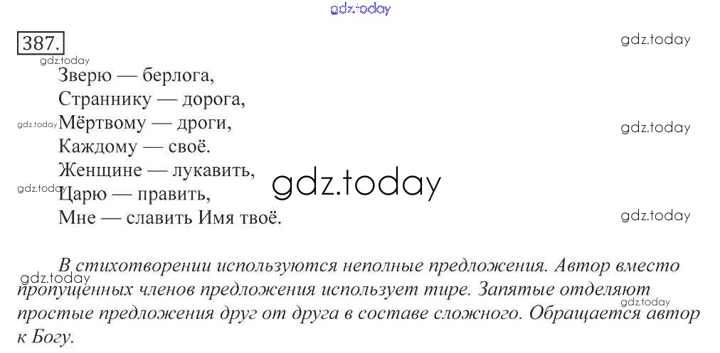 На страницах сайта gdz.today вы найдете учебный и вспомогательный материал, направленный на улучшения знаний школьной программы. ГДЗ - онлайн мир знаний Решение к упражнениям 387 Учебнику по Русскому языку для 10-11 класса Греков, Крючков Просвещение 2016