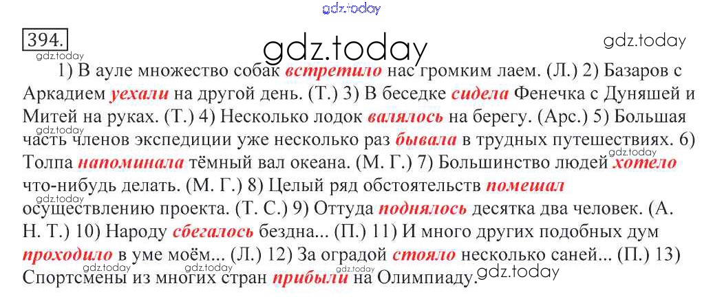 Ответы к Решение к упражнениям 394 Учебнику по Русскому языку для 10-11 класса Греков, Крючков Просвещение 2016