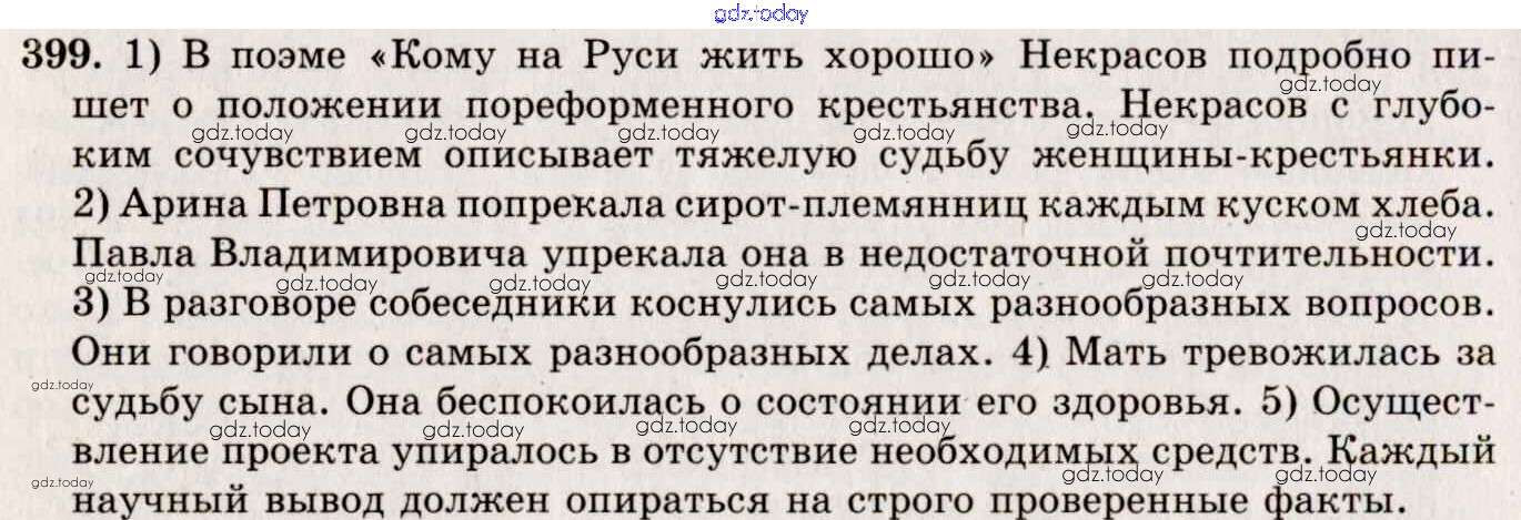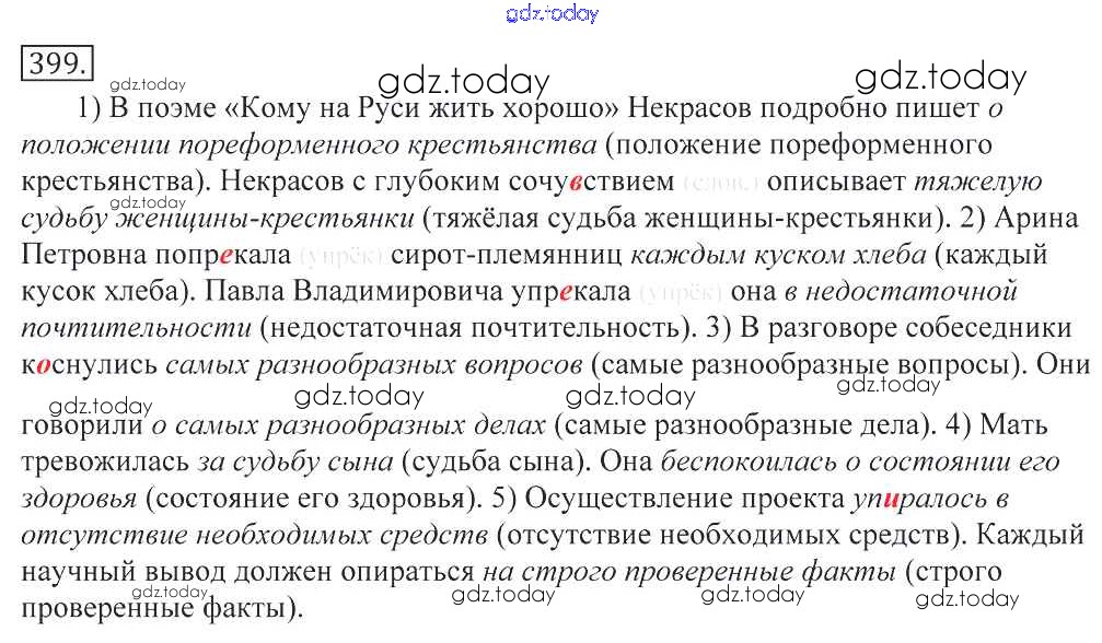 На страницах сайта gdz.today вы найдете учебный и вспомогательный материал, направленный на улучшения знаний школьной программы. ГДЗ - онлайн мир знаний Решение к упражнениям 399 Учебнику по Русскому языку для 10-11 класса Греков, Крючков Просвещение 2016