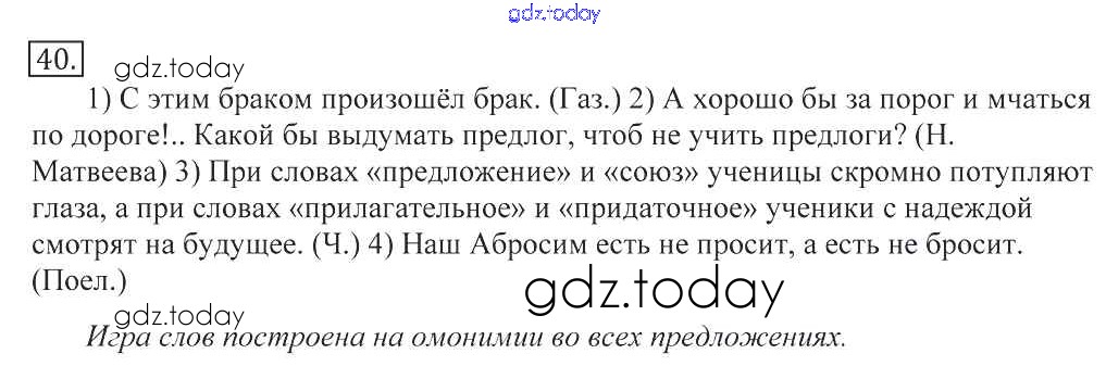 На страницах сайта gdz.today вы найдете учебный и вспомогательный материал, направленный на улучшения знаний школьной программы. ГДЗ - онлайн мир знаний Решение к упражнениям 40 Учебнику по Русскому языку для 10-11 класса Греков, Крючков Просвещение 2016