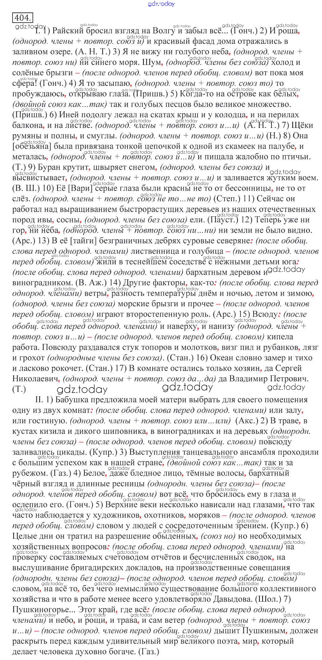 Ответы к Решение к упражнениям 404 Учебнику по Русскому языку для 10-11 класса Греков, Крючков Просвещение 2016