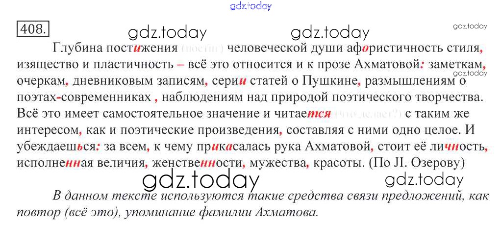 Ответы к Решение к упражнениям 408 Учебнику по Русскому языку для 10-11 класса Греков, Крючков Просвещение 2016