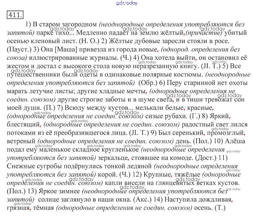 На страницах сайта gdz.today вы найдете учебный и вспомогательный материал, направленный на улучшения знаний школьной программы. ГДЗ - онлайн мир знаний Решение к упражнениям 411 Учебнику по Русскому языку для 10-11 класса Греков, Крючков Просвещение 2016
