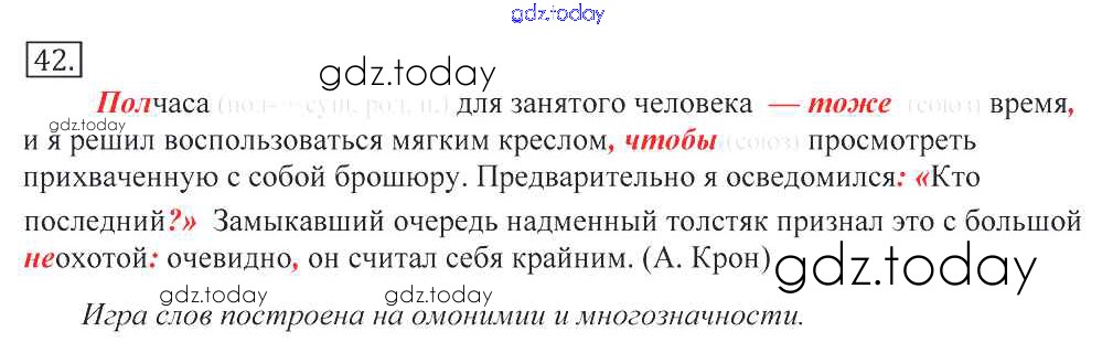 На страницах сайта gdz.today вы найдете учебный и вспомогательный материал, направленный на улучшения знаний школьной программы. ГДЗ - онлайн мир знаний Решение к упражнениям 42 Учебнику по Русскому языку для 10-11 класса Греков, Крючков Просвещение 2016