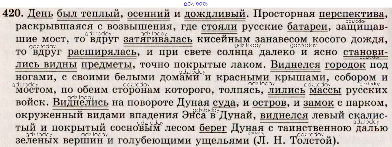 На страницах сайта gdz.today вы найдете учебный и вспомогательный материал, направленный на улучшения знаний школьной программы. ГДЗ - онлайн мир знаний Решение к упражнениям 420 Учебнику по Русскому языку для 10-11 класса Греков, Крючков Просвещение 2016