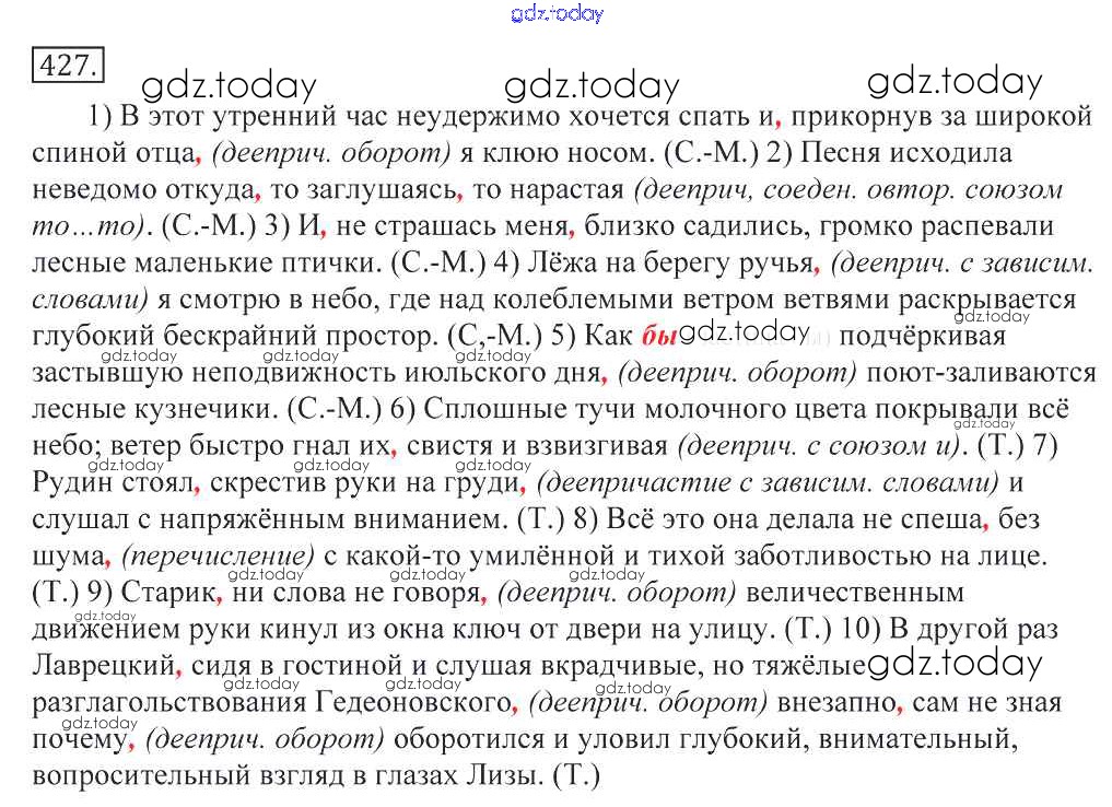 Ответы к Решение к упражнениям 427 Учебнику по Русскому языку для 10-11 класса Греков, Крючков Просвещение 2016