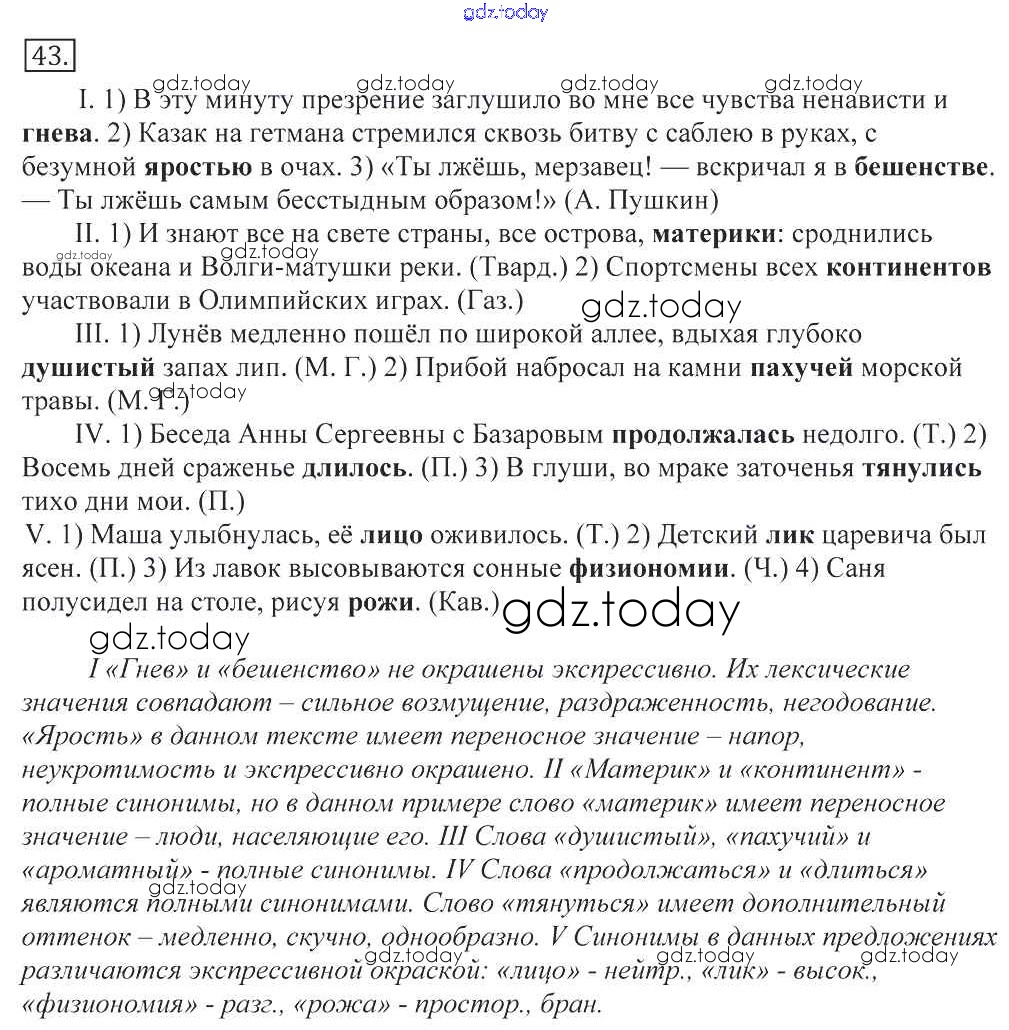 Ответы к Решение к упражнениям 43 Учебнику по Русскому языку для 10-11 класса Греков, Крючков Просвещение 2016