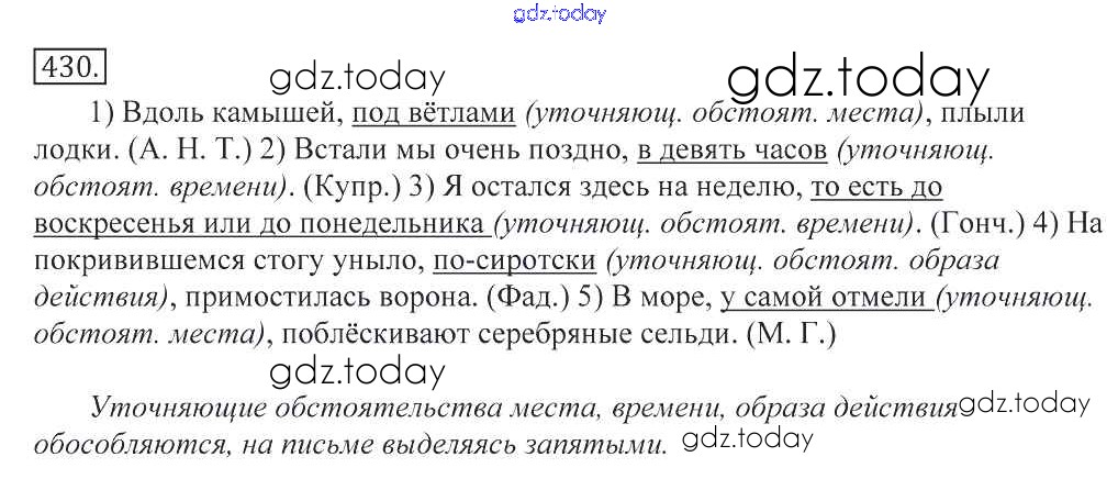 На страницах сайта gdz.today вы найдете учебный и вспомогательный материал, направленный на улучшения знаний школьной программы. ГДЗ - онлайн мир знаний Решение к упражнениям 430 Учебнику по Русскому языку для 10-11 класса Греков, Крючков Просвещение 2016
