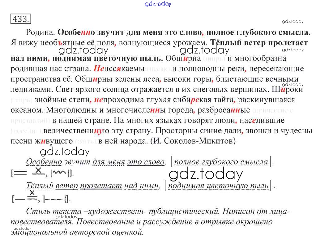 Ответы к Решение к упражнениям 433 Учебнику по Русскому языку для 10-11 класса Греков, Крючков Просвещение 2016