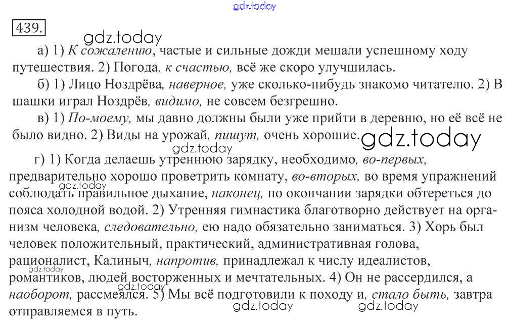 На страницах сайта gdz.today вы найдете учебный и вспомогательный материал, направленный на улучшения знаний школьной программы. ГДЗ - онлайн мир знаний Решение к упражнениям 439 Учебнику по Русскому языку для 10-11 класса Греков, Крючков Просвещение 2016