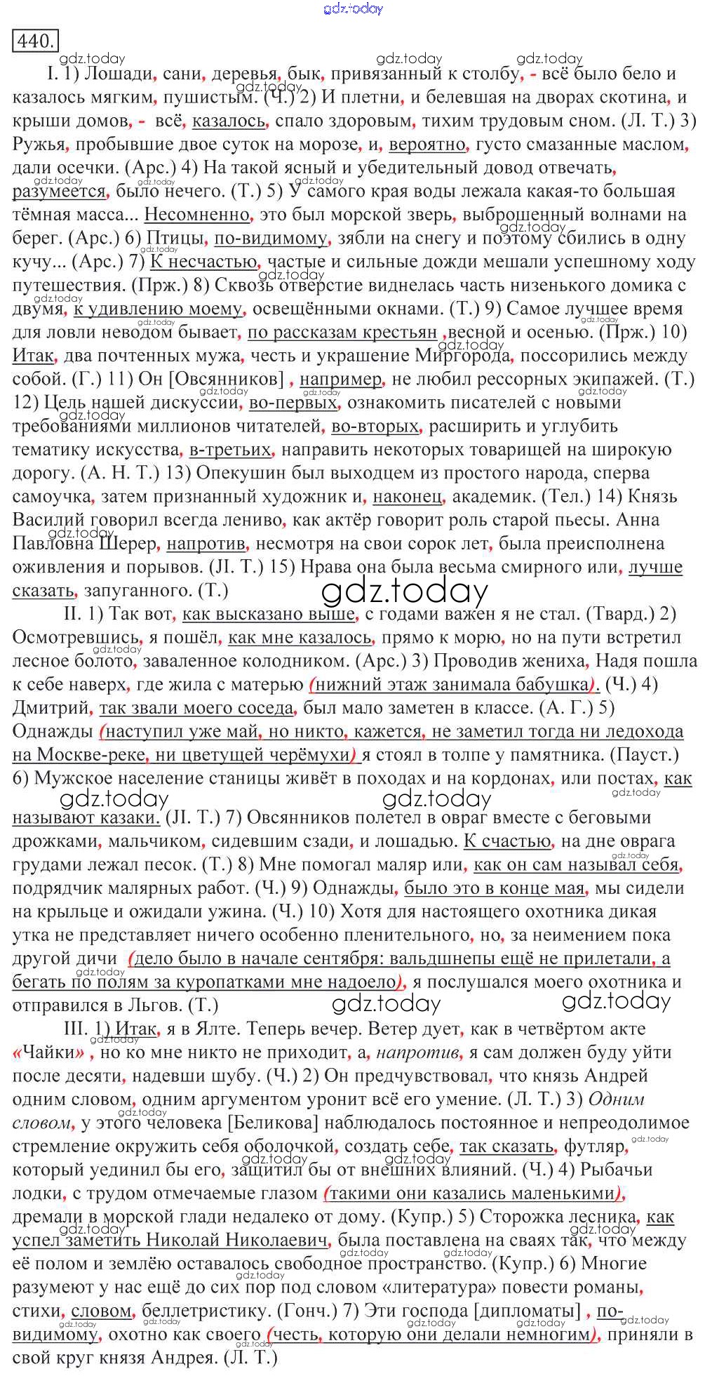 Ответы к Решение к упражнениям 440 Учебнику по Русскому языку для 10-11 класса Греков, Крючков Просвещение 2016