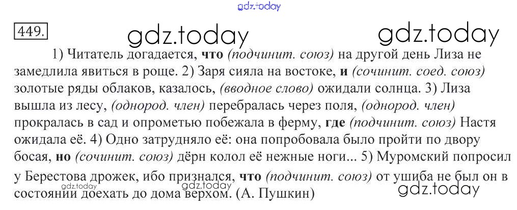 На страницах сайта gdz.today вы найдете учебный и вспомогательный материал, направленный на улучшения знаний школьной программы. ГДЗ - онлайн мир знаний Решение к упражнениям 449 Учебнику по Русскому языку для 10-11 класса Греков, Крючков Просвещение 2016