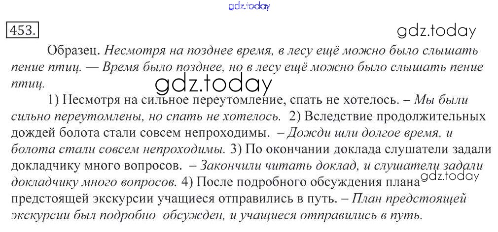 На страницах сайта gdz.today вы найдете учебный и вспомогательный материал, направленный на улучшения знаний школьной программы. ГДЗ - онлайн мир знаний Решение к упражнениям 453 Учебнику по Русскому языку для 10-11 класса Греков, Крючков Просвещение 2016