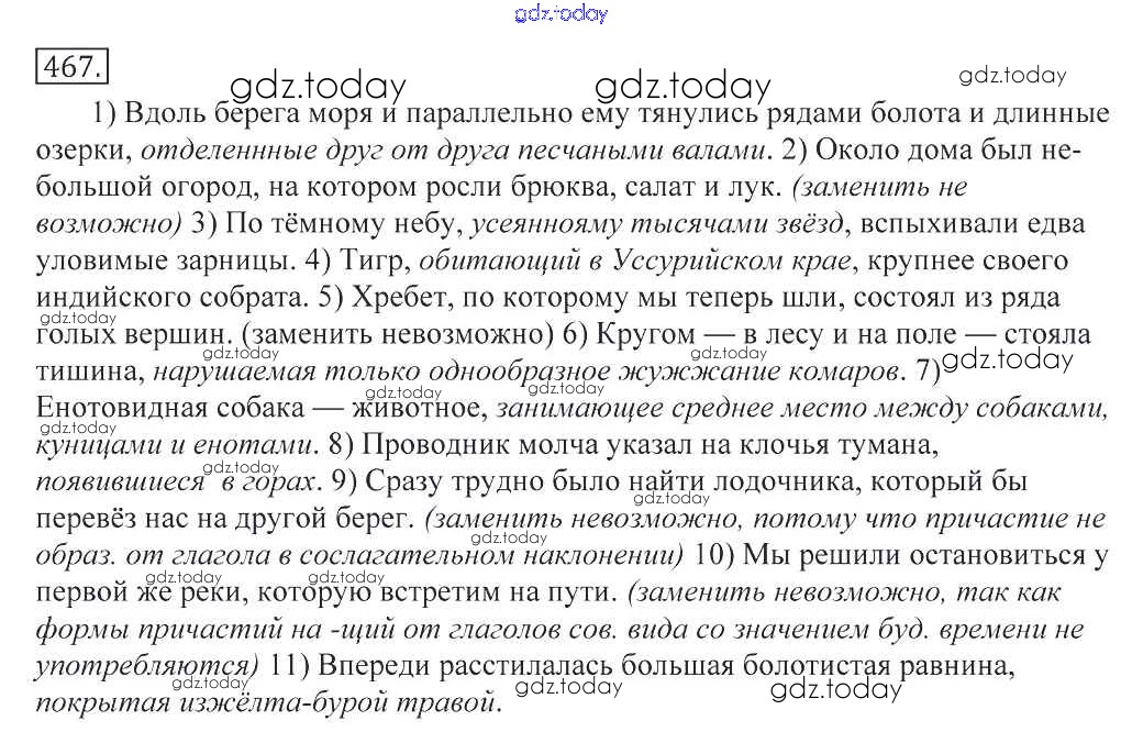 На страницах сайта gdz.today вы найдете учебный и вспомогательный материал, направленный на улучшения знаний школьной программы. ГДЗ - онлайн мир знаний Решение к упражнениям 467 Учебнику по Русскому языку для 10-11 класса Греков, Крючков Просвещение 2016