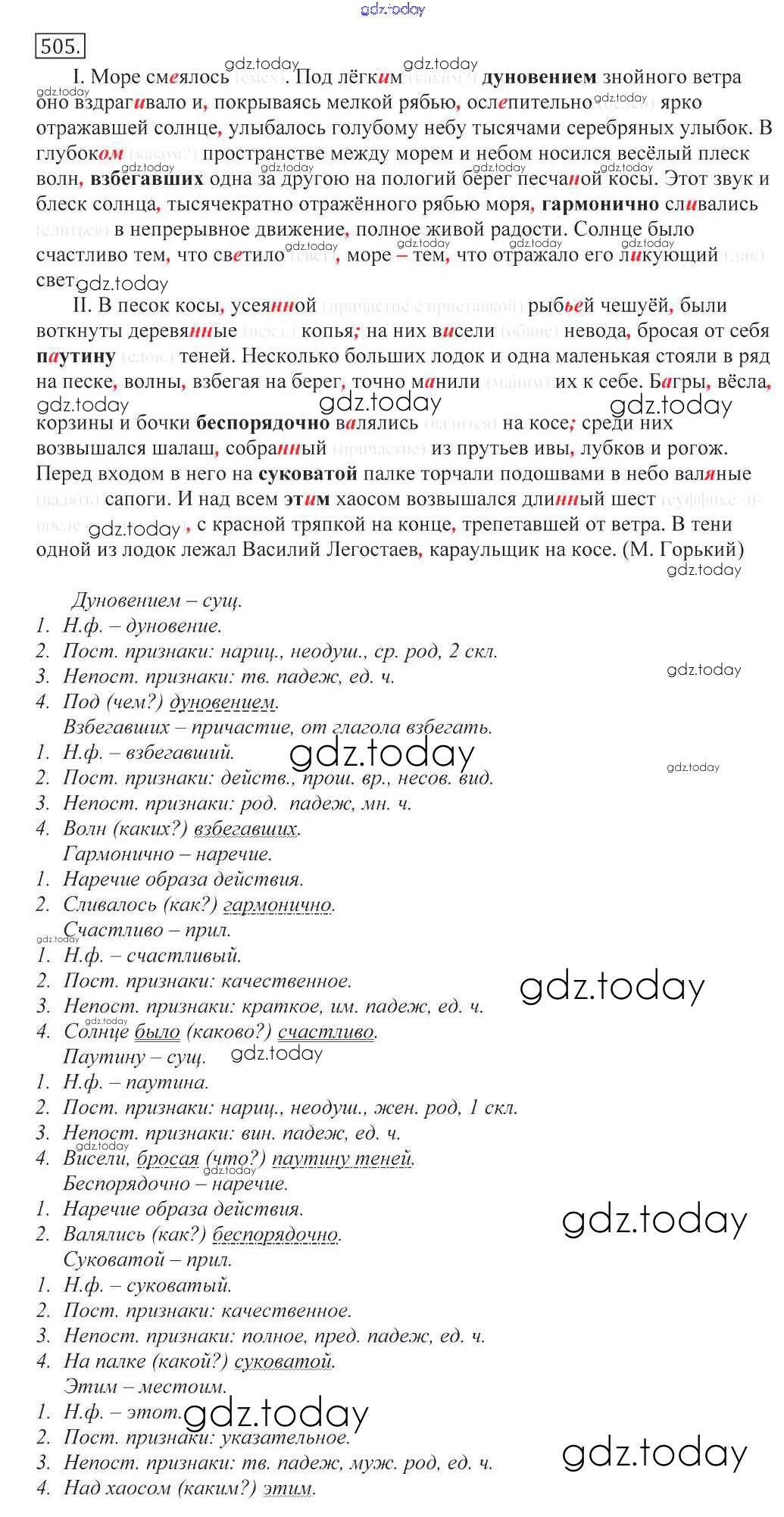 На страницах сайта gdz.today вы найдете учебный и вспомогательный материал, направленный на улучшения знаний школьной программы. ГДЗ - онлайн мир знаний Решение к упражнениям 505 Учебнику по Русскому языку для 10-11 класса Греков, Крючков Просвещение 2016