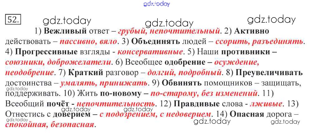 На страницах сайта gdz.today вы найдете учебный и вспомогательный материал, направленный на улучшения знаний школьной программы. ГДЗ - онлайн мир знаний Решение к упражнениям 52 Учебнику по Русскому языку для 10-11 класса Греков, Крючков Просвещение 2016