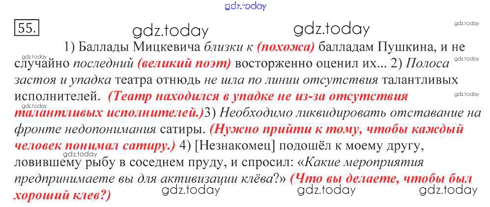 На страницах сайта gdz.today вы найдете учебный и вспомогательный материал, направленный на улучшения знаний школьной программы. ГДЗ - онлайн мир знаний Решение к упражнениям 55 Учебнику по Русскому языку для 10-11 класса Греков, Крючков Просвещение 2016