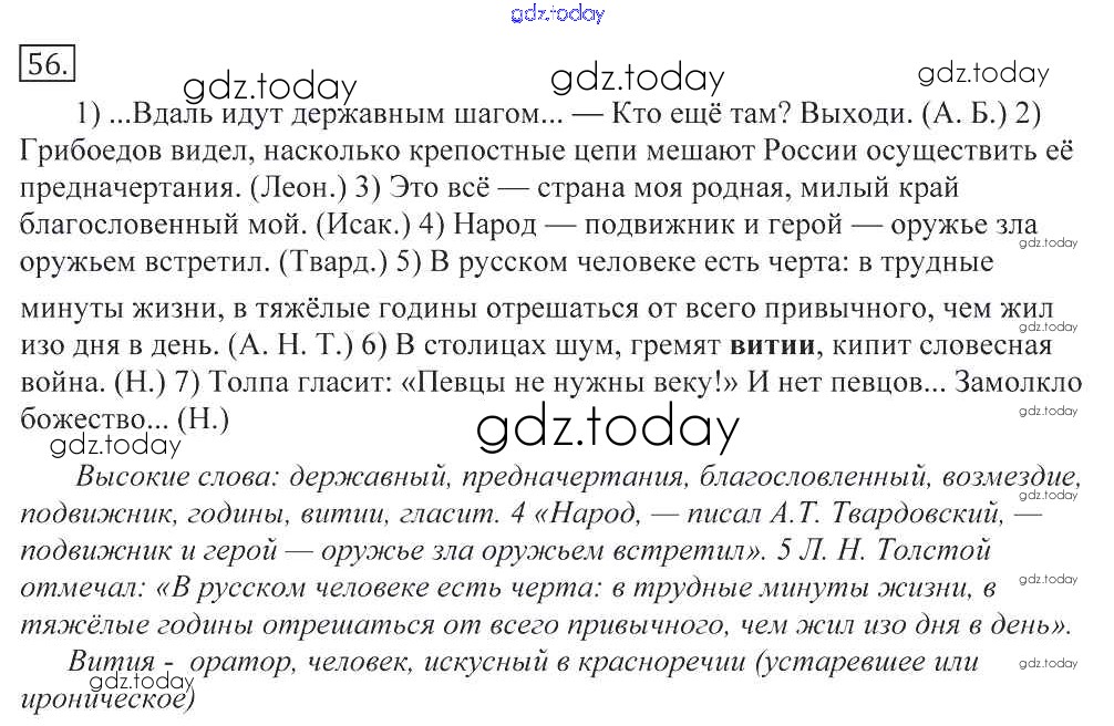 На страницах сайта gdz.today вы найдете учебный и вспомогательный материал, направленный на улучшения знаний школьной программы. ГДЗ - онлайн мир знаний Решение к упражнениям 56 Учебнику по Русскому языку для 10-11 класса Греков, Крючков Просвещение 2016