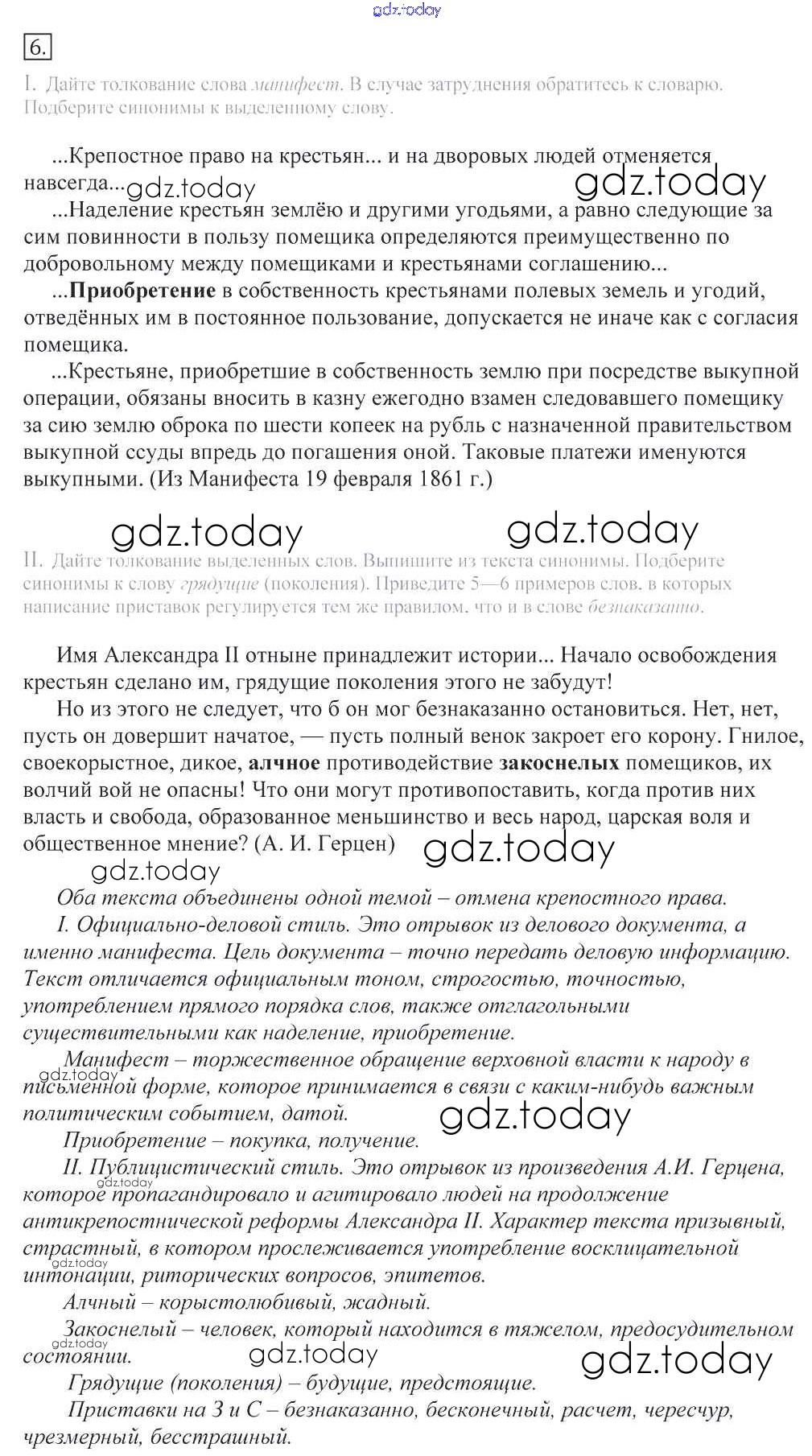 На страницах сайта gdz.today вы найдете учебный и вспомогательный материал, направленный на улучшения знаний школьной программы. ГДЗ - онлайн мир знаний Решение к упражнениям 6 Учебнику по Русскому языку для 10-11 класса Греков, Крючков Просвещение 2016