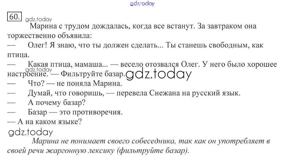 На страницах сайта gdz.today вы найдете учебный и вспомогательный материал, направленный на улучшения знаний школьной программы. ГДЗ - онлайн мир знаний Решение к упражнениям 60 Учебнику по Русскому языку для 10-11 класса Греков, Крючков Просвещение 2016